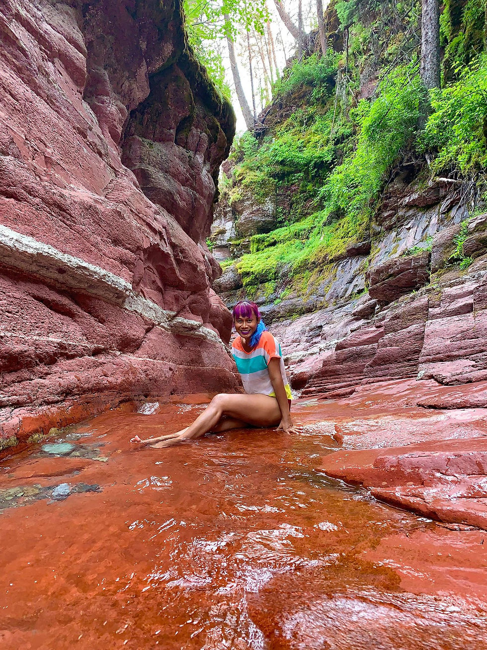 Did I tell you that this summer was the bravest I have been? Yes, mama, bikini season and flaunting my au natural bootie that my Momma gave me and yes, my little titties, too. Who cares. I didn't care, I was wearing one at Red Rock Canyon at Waterton Lakes Park. Can I just say that I will see you next year again, Waterton? At Castle Falls, Myra Falls, Lasqueti Island, and Whistler. Oh, Lasqueti Island, the vibe was different but I enjoyed it. This brown girl with mermaid's hair, strutting like Carrie Bradshaw. It was stunning!